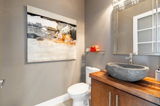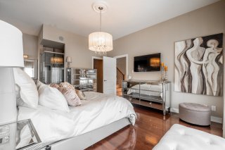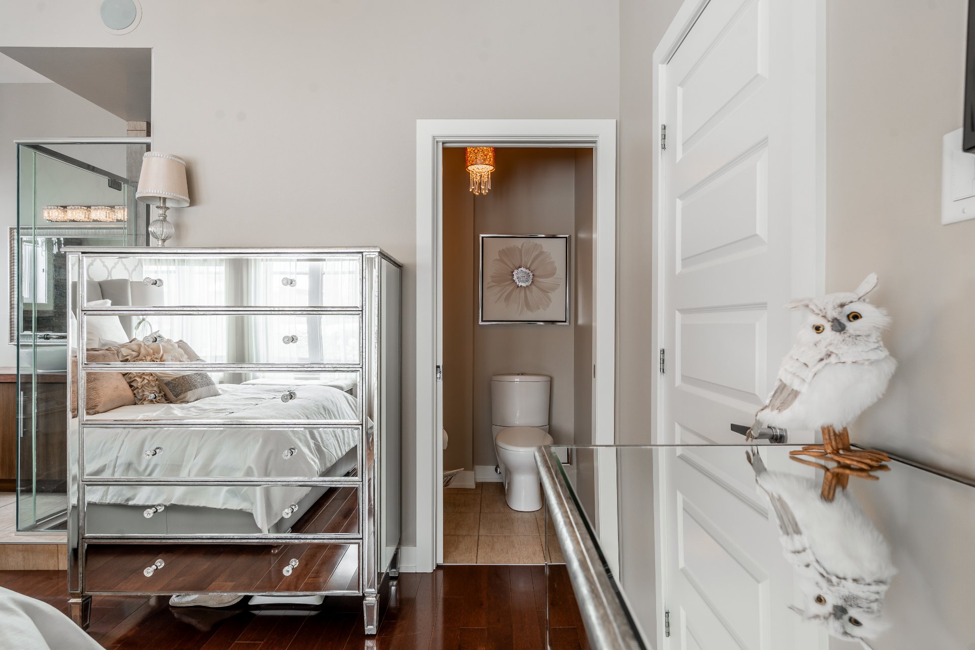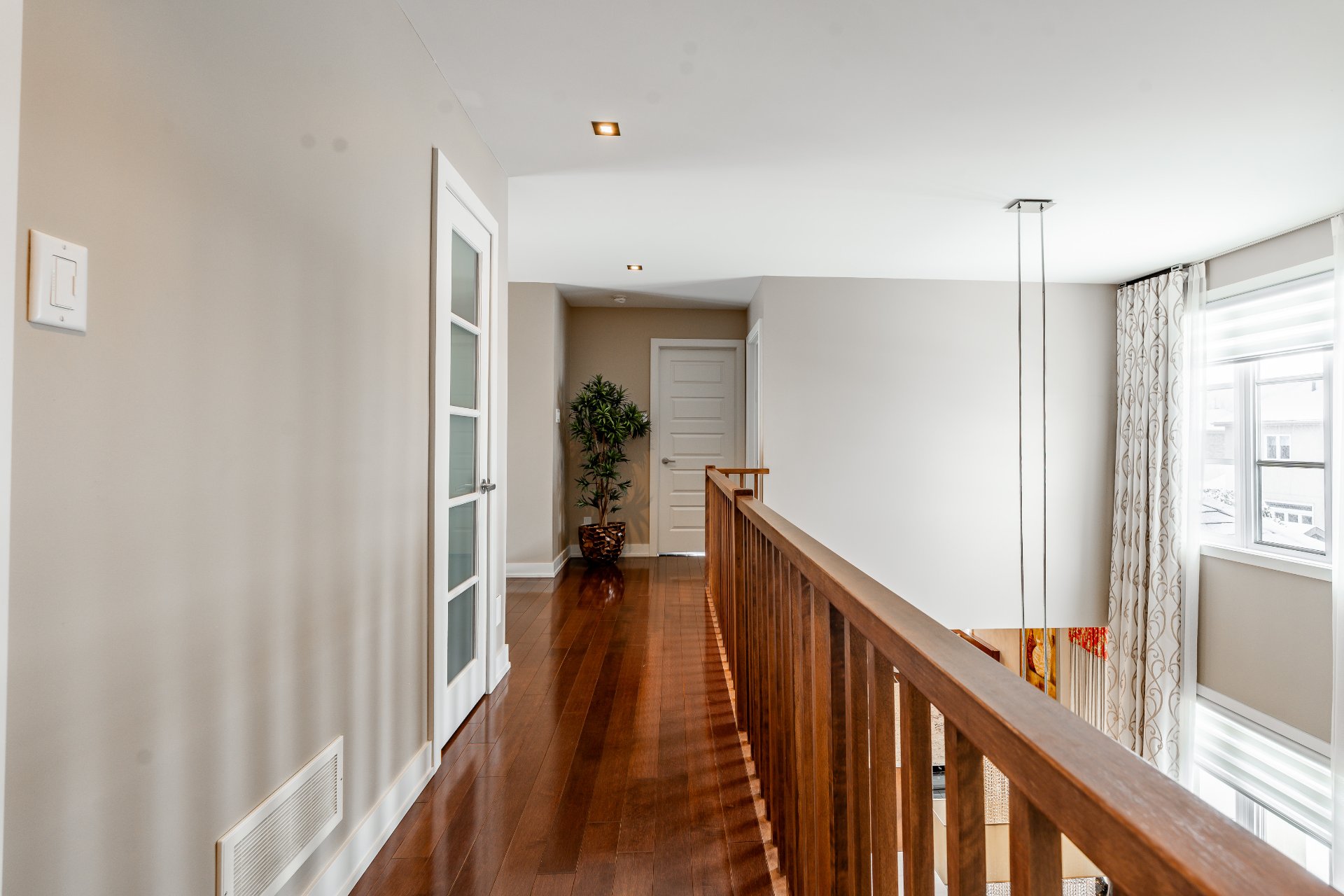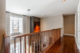 À l'étage, la propriété propose une configuration unique. La suite des maîtres est aménagée sur son propre étage, offrant un espace intime avec walk-in et une salle de bain à concept ouvert, incluant une section indépendante fermée. Sur un autre niveau, vous trouverez trois chambres à coucher, chacune avec leur walk-in, ainsi qu'une salle de bain complète avec espace laveuse-sécheuse. Cet étage se distingue par sa vue spectaculaire sur le rez-de-chaussée grâce à sa fenestration abondante.