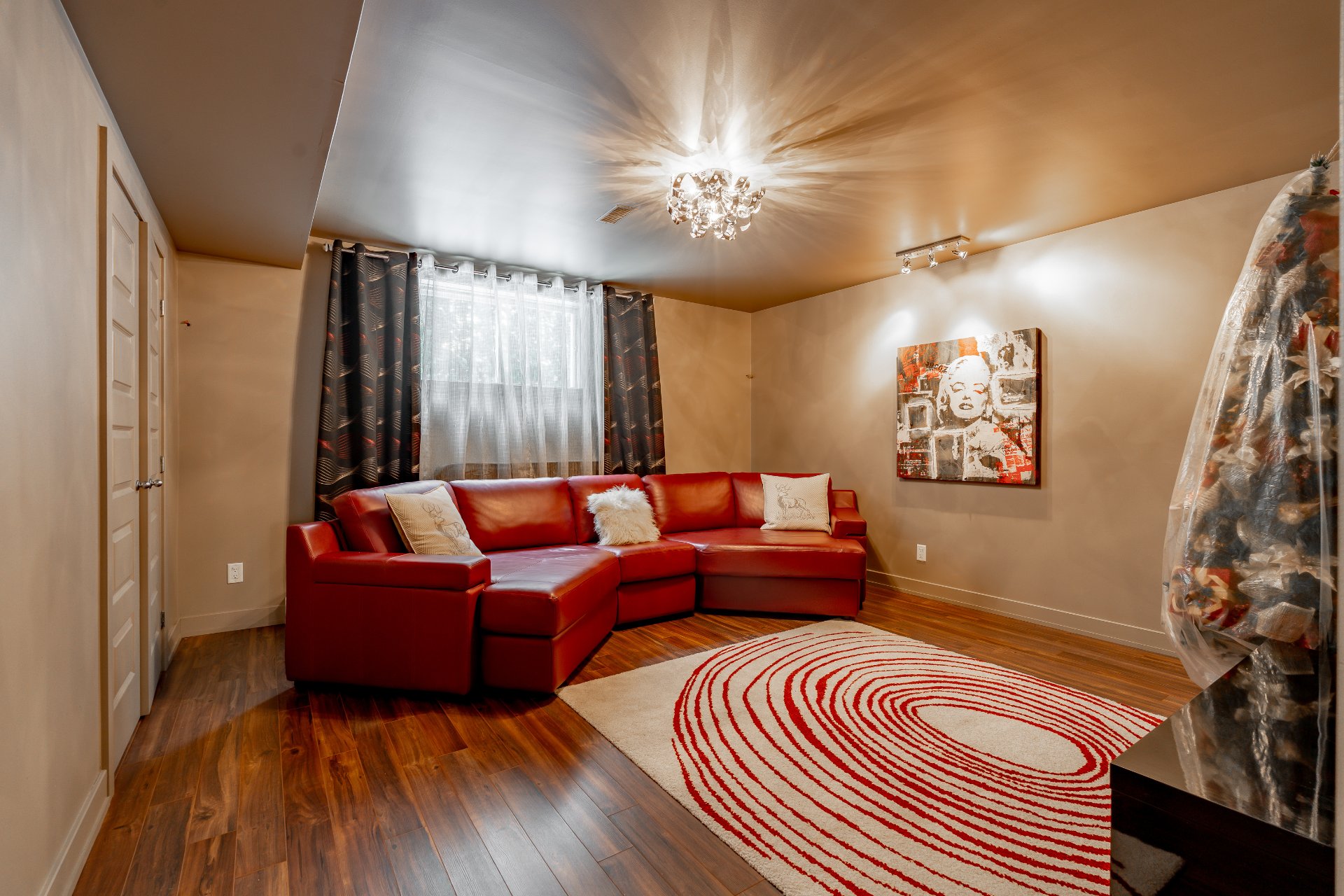 Le sous-sol offre une grande salle familiale polyvalente, idéale selon vos besoins, ainsi qu'une chambre à coucher avec walk-in et une salle de bain rénovée. Plusieurs espaces de rangement sont également à votre disposition.